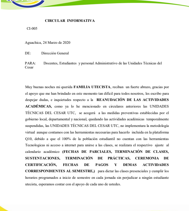 URGENTE: Circular Informativa